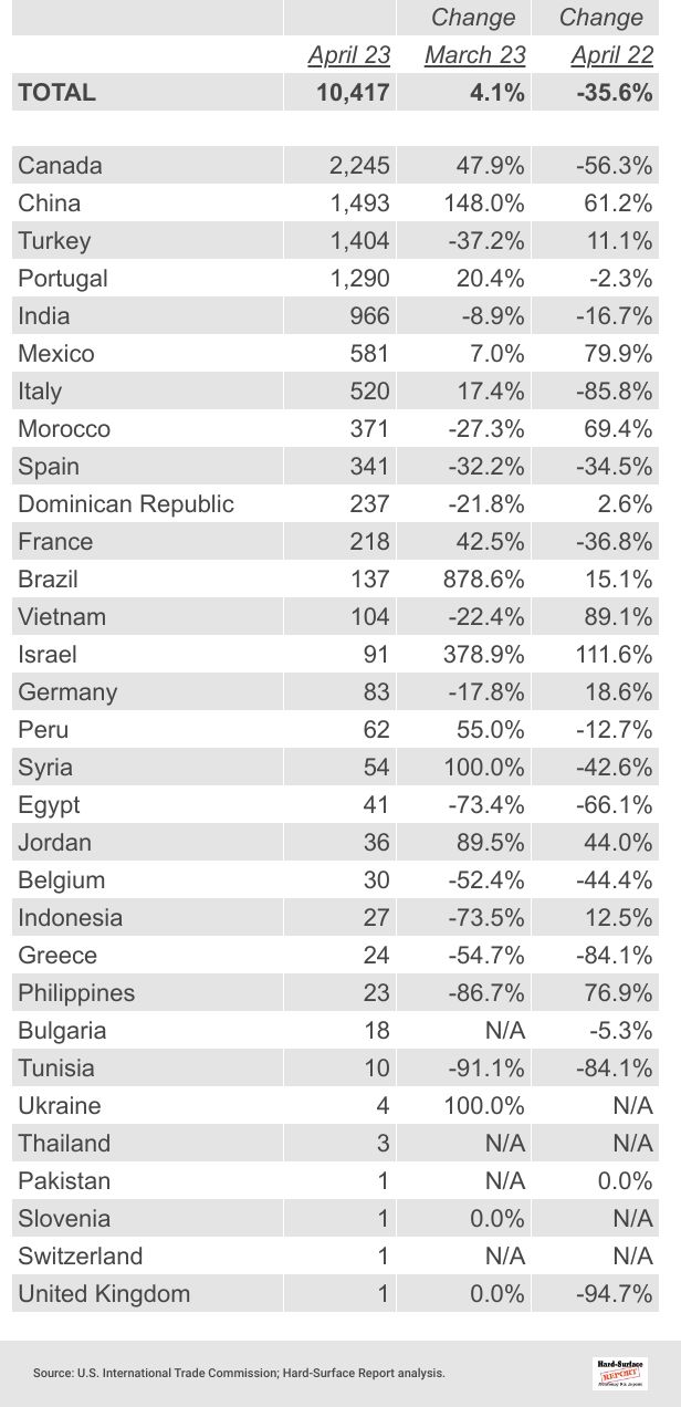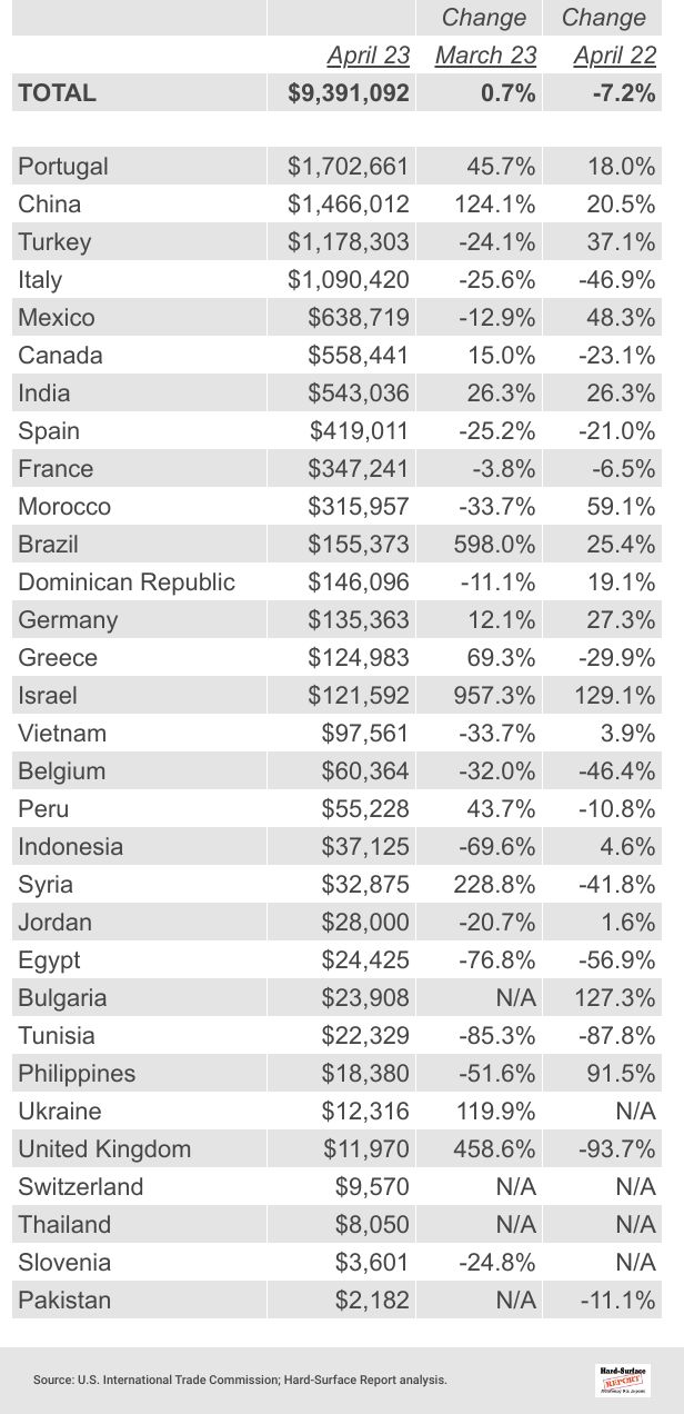 26 Porcelain Tile by Country | April 2023
