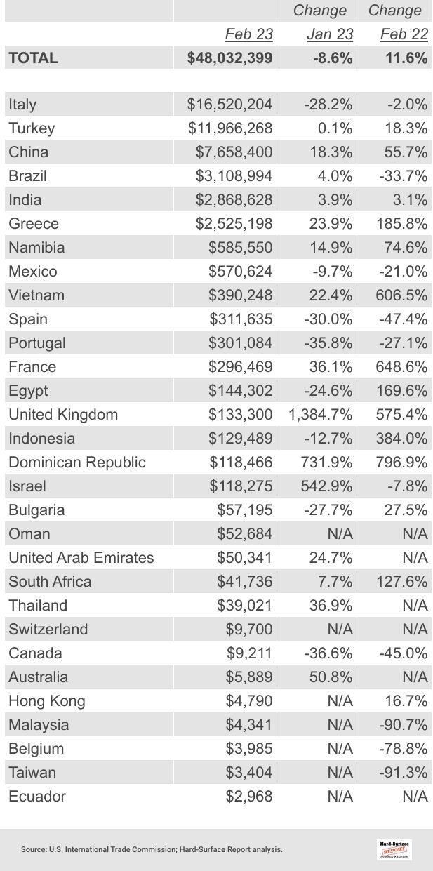 23 Other Stone by Country | February 2023