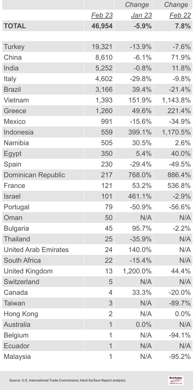 09 Quartz Surface by Country | February 2023