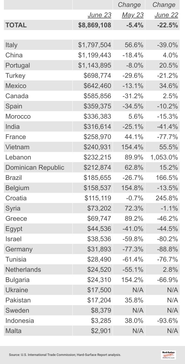 09 Quartz Surface by Country | June 2023