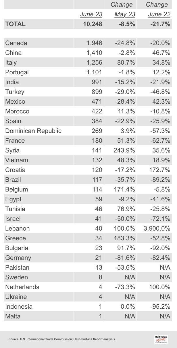 27 Porcelain Tile by Country | June 2023