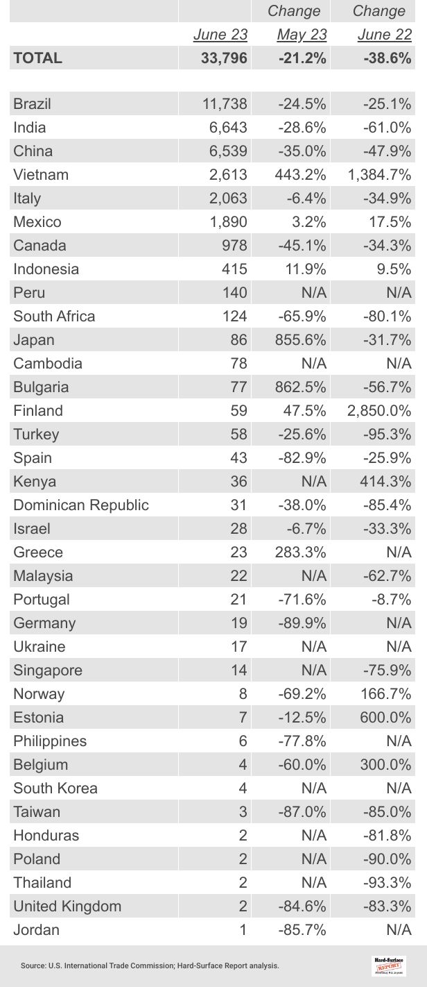 27 Porcelain Tile by Country | June 2023