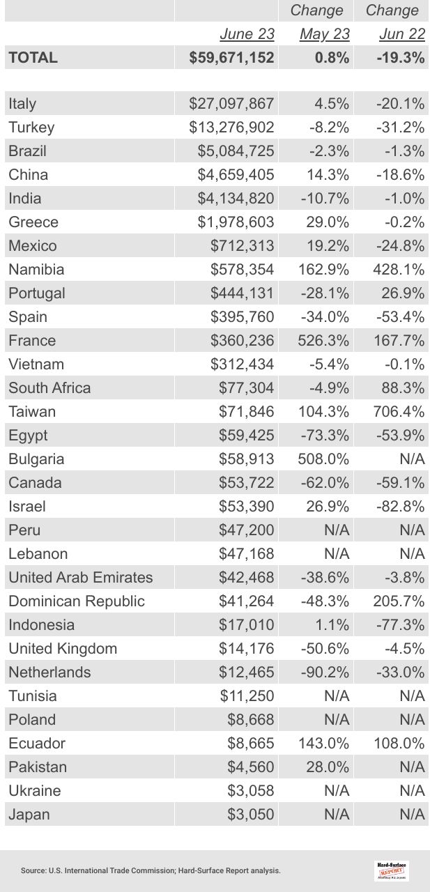23 Other Stone by Country | June 2023