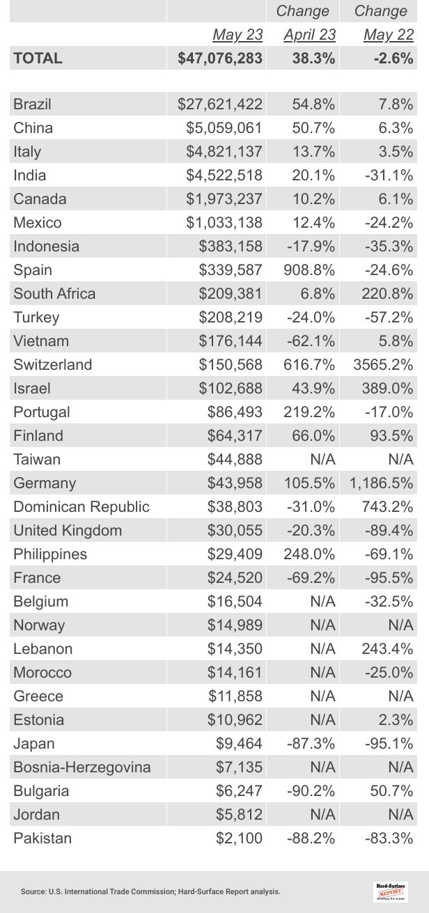 09 Quartz Surface by Country | May 2023