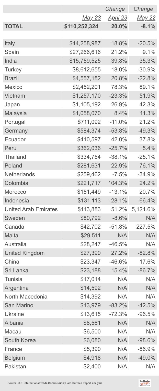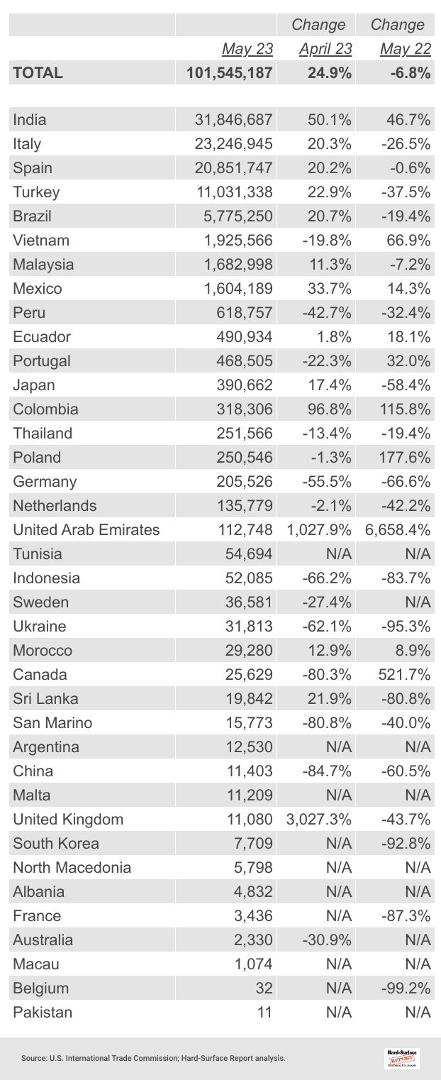 26 Porcelain Tile by Country | May 2023